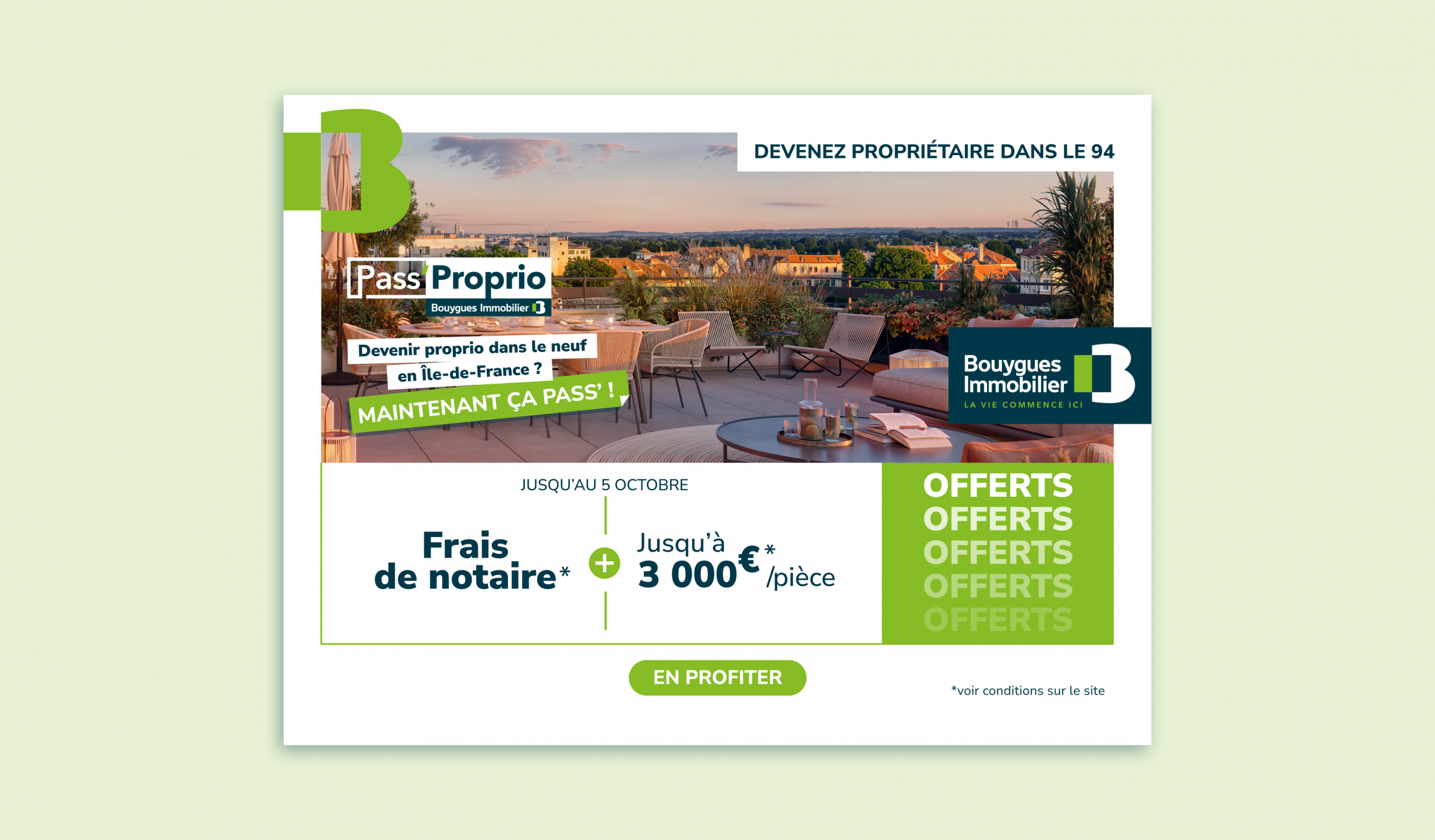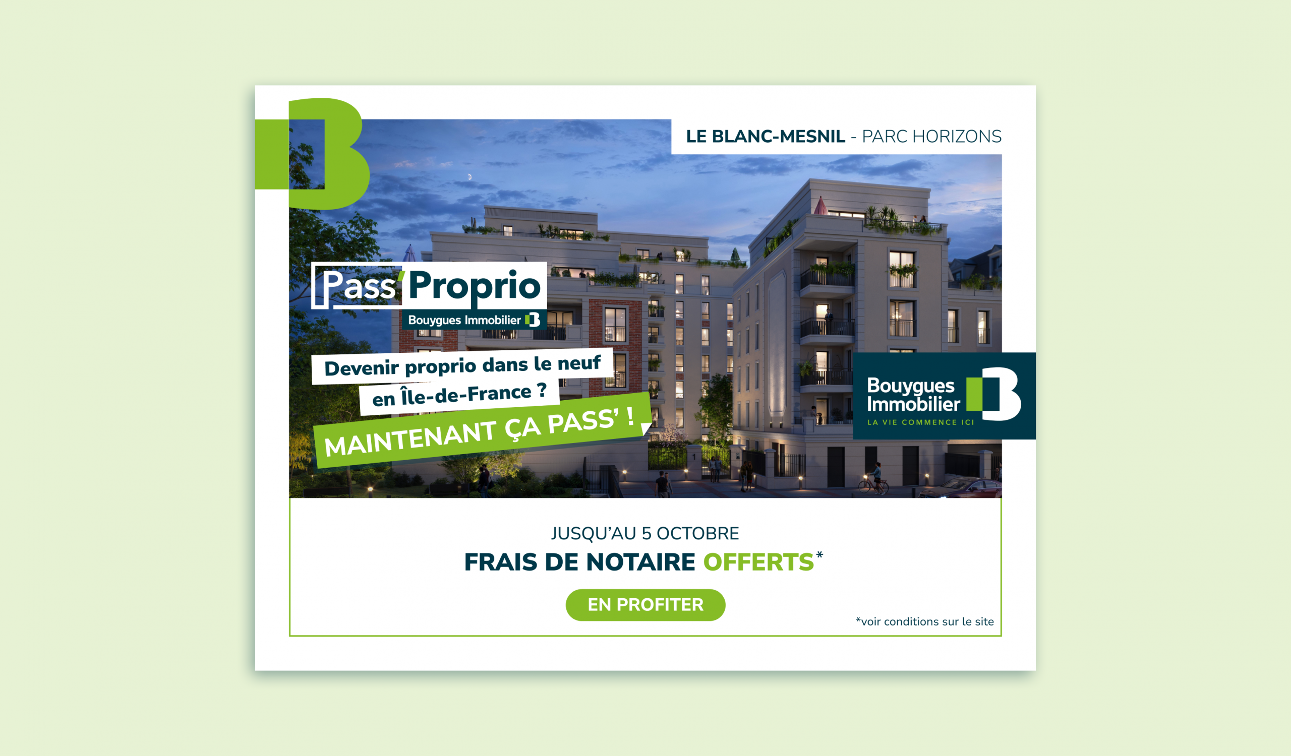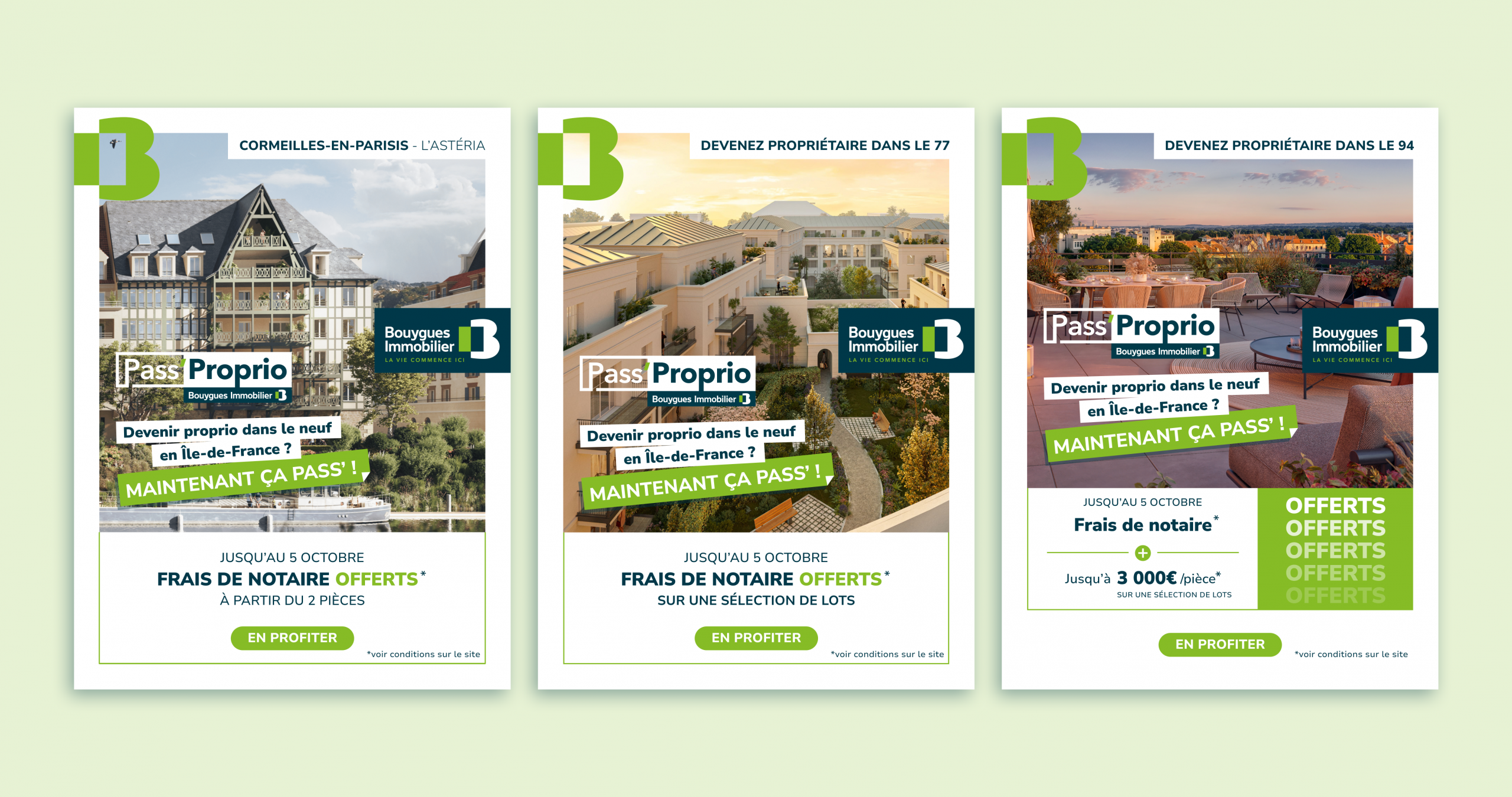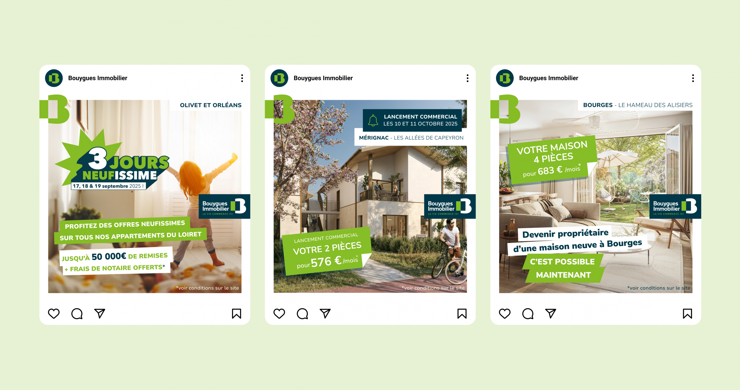 Un point crucial du projet a été de garantir un respect strict de la charte graphique de Bouygues Immobilier sur l’ensemble des créations, tout en gérant une contrainte technique majeure : l’optimisation du poids des fichiers pour assurer un chargement optimal des publicités.